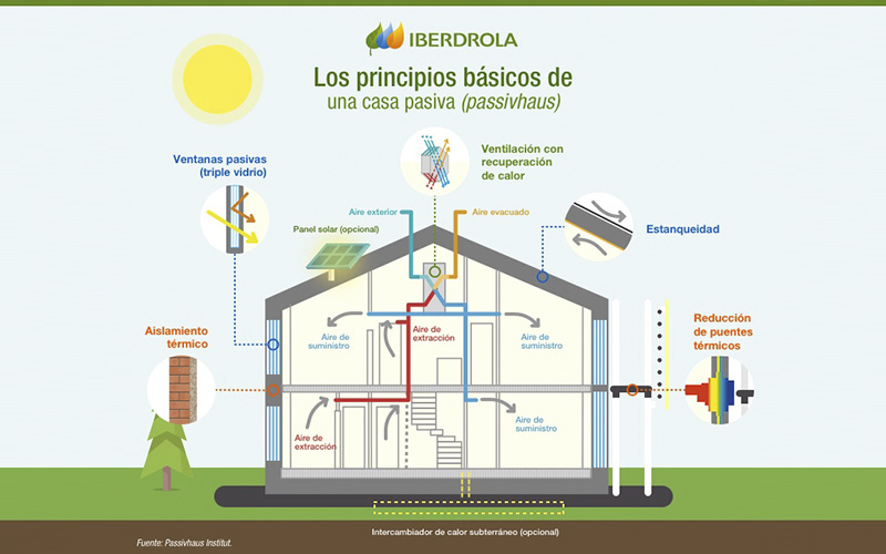 · Diseño bioclimático y eficiente. El diseño de estos edificios se adapta al entorno y al clima local para minimizar el gasto de energía y recursos, evitando pérdidas y fugas.
